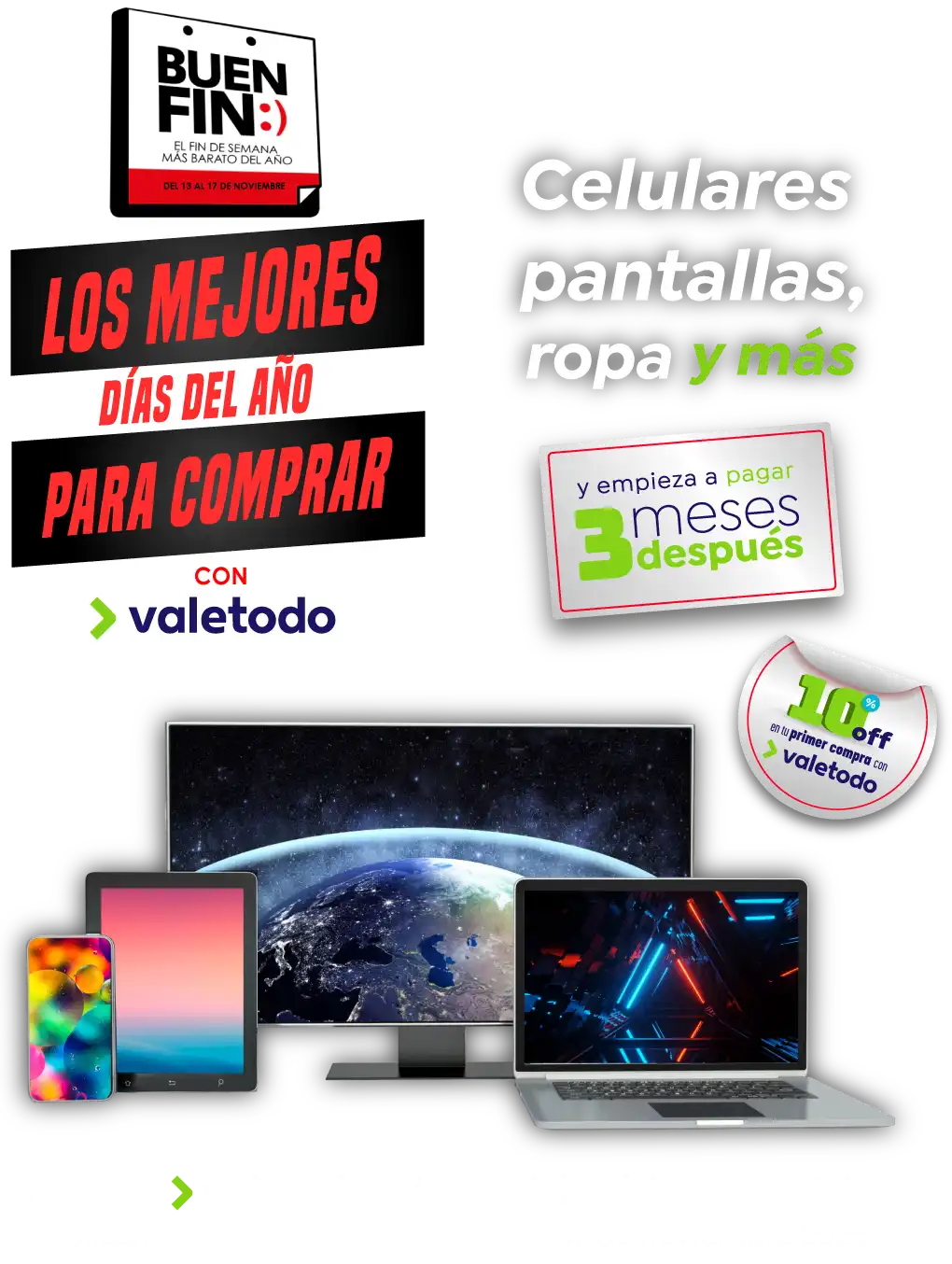 Ya sea que necesites un préstamo inmediato o comprar en miles de comercios pagando en cómodas quincenas, VALETODO es tu mejor opción. Y si lo que quieres es aumentar los ingresos de tu negocio, VALETODO es para ti. Con VALETODO reinventamos el vale.